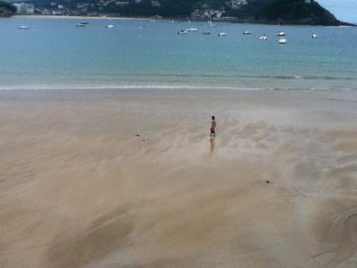 Gut ausgeruht und getrocknet ging es morgens um halb Acht zum Busbhanhof. Dankenswerterweise nahm Helmut mich auf seinem Weg zur Arbeit im Auto mit, so dass mir ein neuerliches Suchen erspart blieb. Die span. Überlandbusse sind sehr coole Einrichtungen. Für 6 Euro kann man nach San Sébastian fahren und ist binnen 90 Min. dort. Alleine die Maut für die gleiche Strecke mit dem Auto wären 10,99 EUR (einfache Fahrt), plus Sprit und Parkgebühren. Und Stress. Mit dem Bus aber kommt man entspannt für kleines Geld mitten in die City. Dummerweise hat der Bus aber heute - weil Montag - eine Sonderroute genommen und an der Universidad de Pais de Vasco zu San Sébastian gehalten um die ganzen Pendel-Studenten dort abzuladen. Leider hat der Busfahrer es nicht für nötig befunden, darauf hinzuweisen und meine Frage, ob das hier San Sébastian sei, bejaht (technisch gesehen ja auch korrekt, aber hat mir auch nicht viel geholfen). So stand ich also an der Uni, die etwa 4 Km von der City entfernt ist. Immerhin habe ich dann rausfinden können, welcher Bus zur Stadtmitte fährt (Ha! Es gibt doch Spanier, die englisch können!) und war 20 Min. später am Boulevard. Ein wunderschönes Meerespanorama erstreckt sich am ehemaligen Seebad und macht den Reiz dieser Stadt ("Nizza am Atlantik") aus. Den Fluss entlang kann man dann die Flaniermeile abschreiten und so den Vibe der Stadt mitbekommen. Anschließend habe ich noch ganz südländisch die letzte Stunde vor Abfahrt im Café gesessen und meinen "Der Pate" wetergelesen. Omerta!